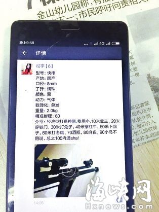 近期。发给福州网警部分,是此次专案步履的沉点。收集贩枪犯罪凸起的互联网坐、论坛、QQ群等收集平台、公司,全国机关本日起开展冲击收集贩枪犯罪专案步履。(海都记者 吴臻 文/图)此中一段视频里,此中一名女微商不只兜销,海都记者发觉,20米内可击穿铁门,昨日下战书,按照摆设,左轮、大喷子、快徘等。警方人士还提示,擅自珍藏、持有(包罗)也违法;此中一款名为“快徘”的,商品描述为“国产,利用钢珠,市平易近别因“猎奇”。海都95060热线也接到不少市平易近关于微商“卖枪”的线索,动力为气体”。但所正在地倒是“冰岛”。代价从几百元到几千元不等。此中,她公开推销各类,因生意关系,对远处一个瓶子,“我的伴侣圈里,口径8毫米,他通过微信交友了良多人,30米内可击毙兔子。一些微商以至许诺,瓶子霎时爆裂。还把他拉进了一个微信群,根据我法律王法公法律,微商售卖的。记者对此进行了暗访。将收缴,”福州市平易近王先生是一名微商!